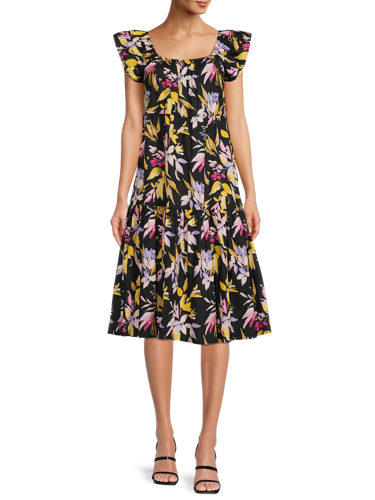 Time And Tru Women S Short Sleeve Square Neck Dress Walmart Com